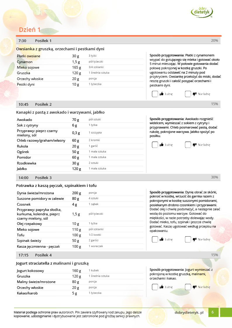 • w formie precyzyjnych jadłospisów wielodniowych (na każdy dzień miesiąca jest opracowany osobny jadłospis). Tutaj nie musisz zastanawiać się co zjeść każdego dnia, gdyż będziesz mieć dokładnie wszystko rozplanowane.