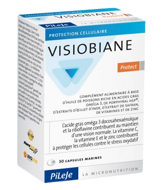 Visiobiane Ochrona przyczynia się do utrzymania sprawnego widzenia, a także do ochrony komórek przed stresem oksydacyjnym. Olej rybny zawarty w Visiobiane Ochrona dostarcza kwasów Omega 3, DHA oraz EPA. DHA przyczynia się do utrzymania sprawnego wzroku. Korzystny efekt uzyskuje się dostarczając dziennie 250 mg DHA. Witaminy B2, C i E przyczyniają się do ochrony komórek przed stresem oksydacyjnym. Zawarty wyciąg z płatków aksamitki stosowany jest w przemyśle rolno - spożywczym i pozyskuje się z niego luteinę. Luteina występuje w ilości 1 grama na kilogram kwiatów aksamitki, czyli 1000 ppm*. Aksamitka nie zawiera poważnych alergenów, podobnie jak olej z nasion krokosza, w którym luteina jest zawieszona. * 1 ppm (parts per million) = 1mg/1kg. Rekomendowany do suplementacji w: profilaktyce AMD (degradacji plamki związanej z wiekiem), przypadku częstej pracy przy komputerze, zapewnieniu właściwych funkcji narządu wzroku. Przeciwwskazania: nie stosować u dzieci poniżej 5 roku życia. Nie zawiera glutenu ani laktozy.